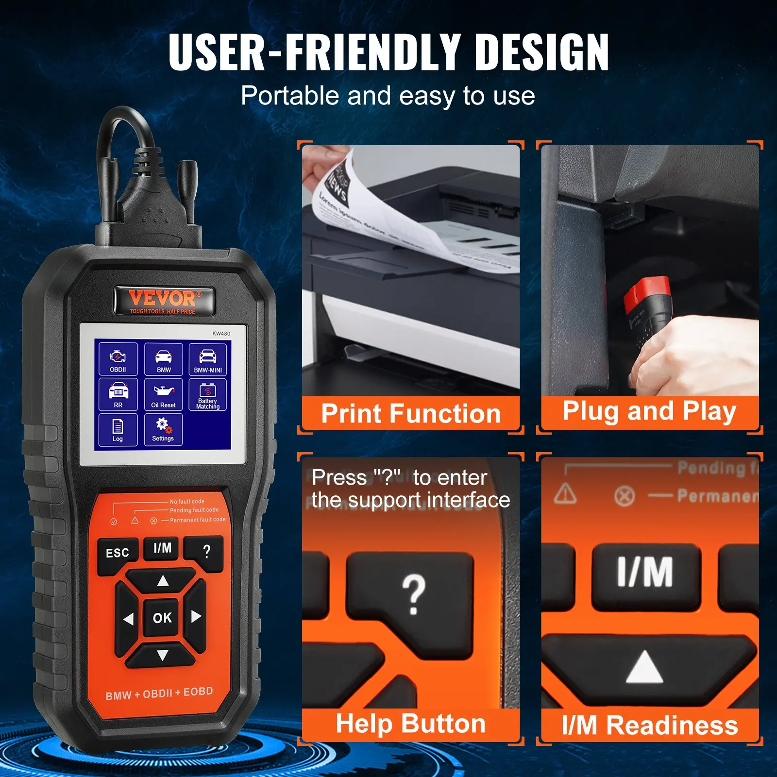 VEVOR BMW OBD2 Scanner Diagnostic Tool, For BMW/Mini/Rolls-Royce, Full System Diagnostic Scan Tool, 12 Special Functions, Car Read Code Reader with CBS SAS EPB ECM DME/DDE Oil Reset Battery Matching