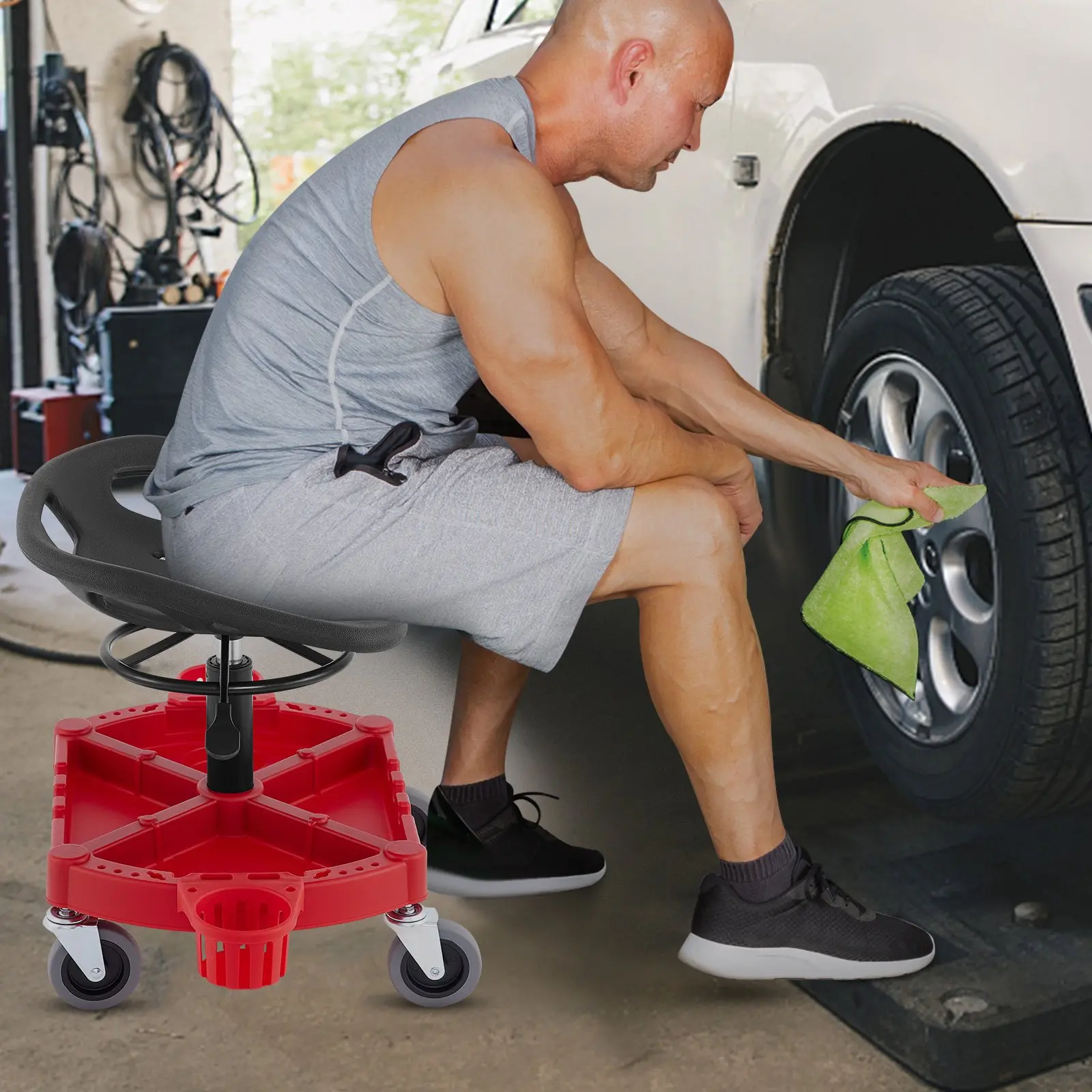 360-degree Swivel Wheels (4″”), Large Tool Tray with Two Bottle Holder, for Workshop, Auto Repair Shop, Red