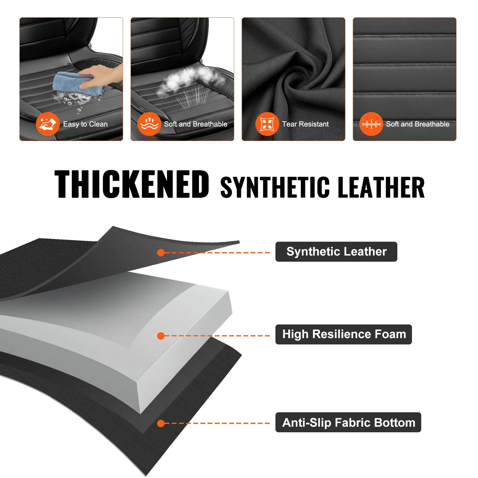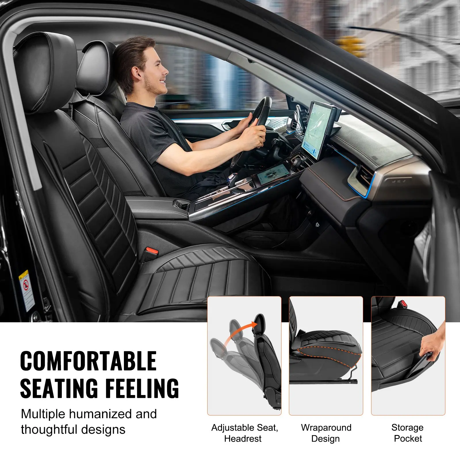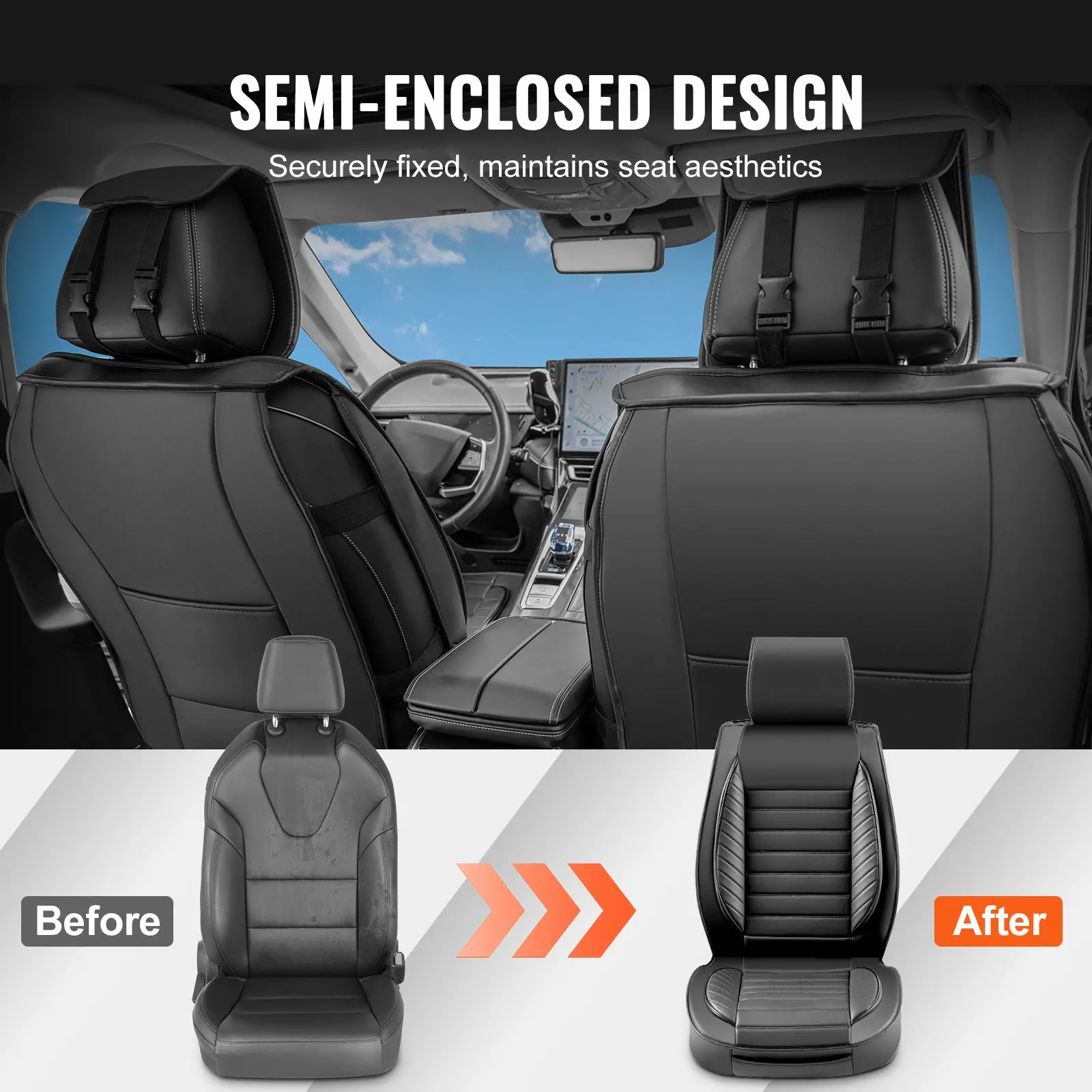 VEVOR Seat Covers, Universal Car Seat Covers Front Seats, 2pcs Faux Leather Seat Cover, Semi-enclosed Design, Detachable Headrest and Airbag Compatible, for Most Cars SUVs and Trucks Black