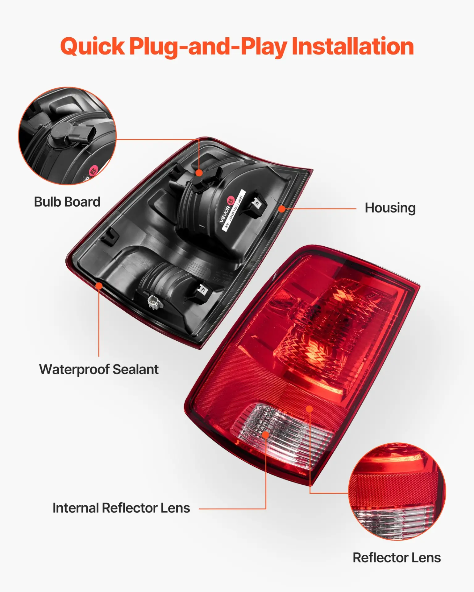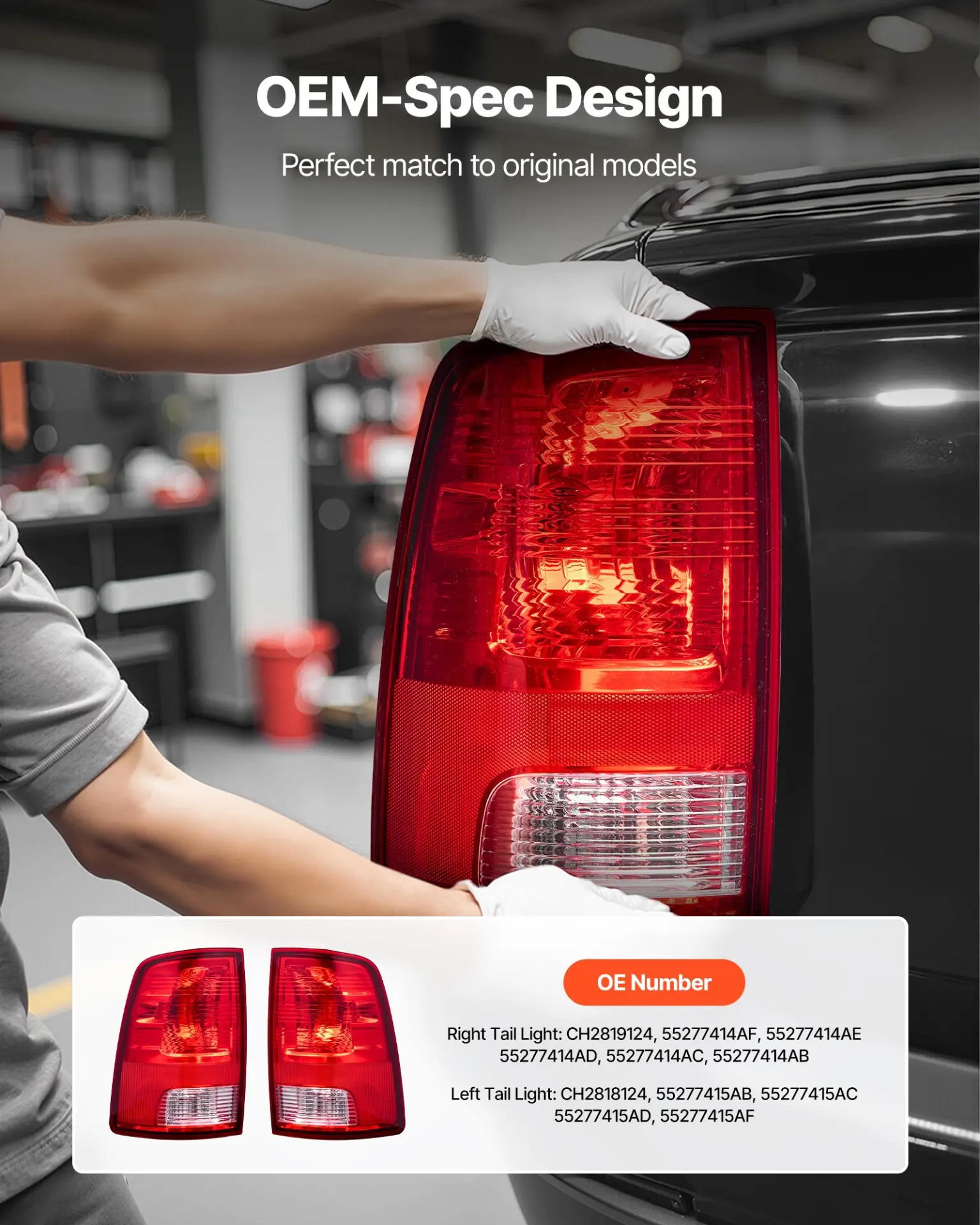 VEVOR Tail Light Assembly Compatible with 2009-2018 Dodge Ram 1500 2500 3500, 2019-2020 Dodge Ram 1500 Classic, Halogen Version Left & Right Side Taillight Rear Brake Lamps with Halogen Bulbs, 2PCS