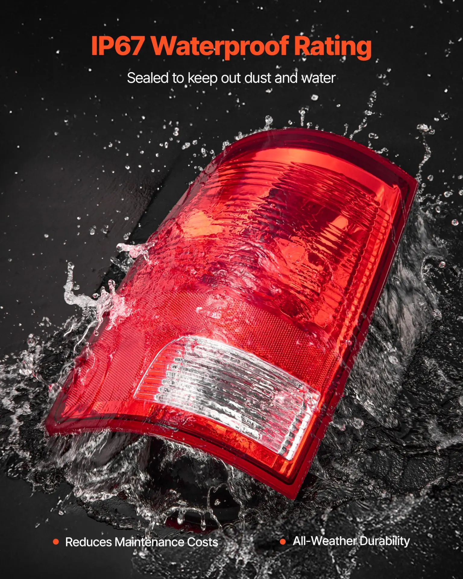 Waterproof Rating: IP67,Color: Red,Item Model Number: DG-805,Product Weight: 3.53 lbs / 1.6 kg,Applicable Voltage: DC12V,Package Quantity: 2 PCS (Left & Right Sides),Product Dimensions: 7.48 x 7.48 x 14.17 in / 190 x 190 x 360 mm,Main Material: ABS, PC, PMMA